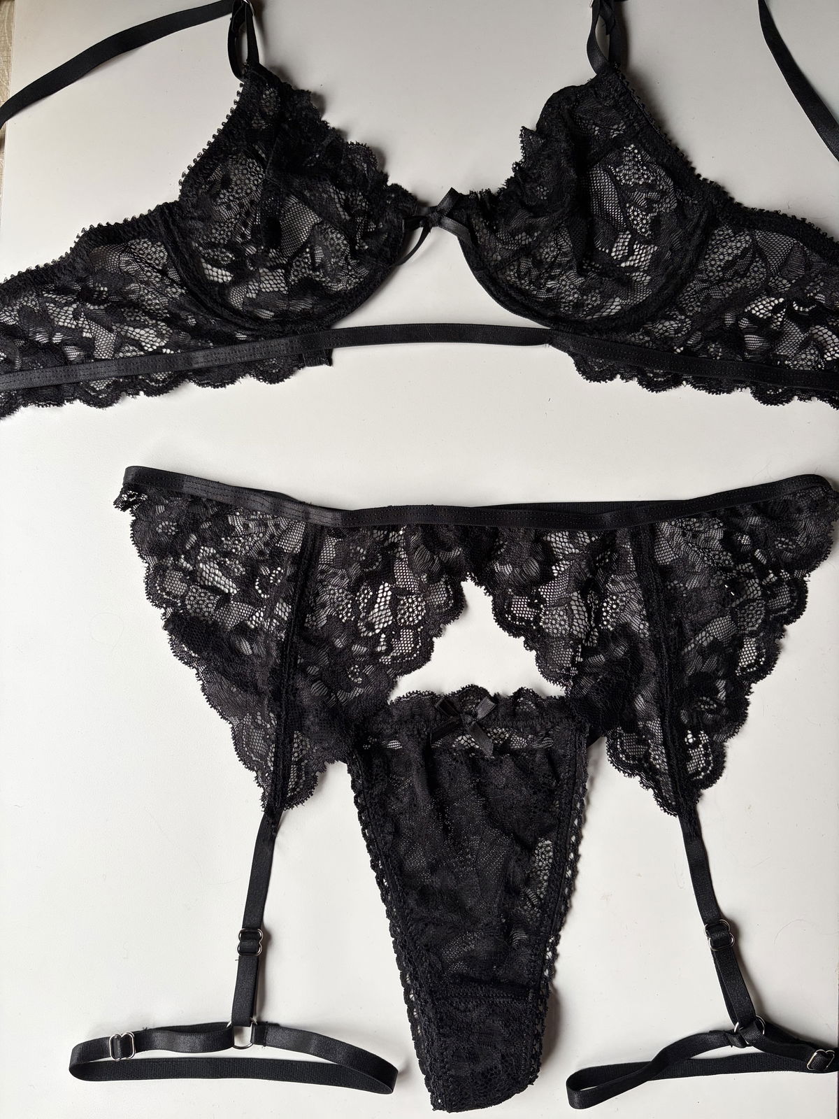 Conjunto de encaje con portaligas y less regulable en talles 36,38 y 40 de pantalon!