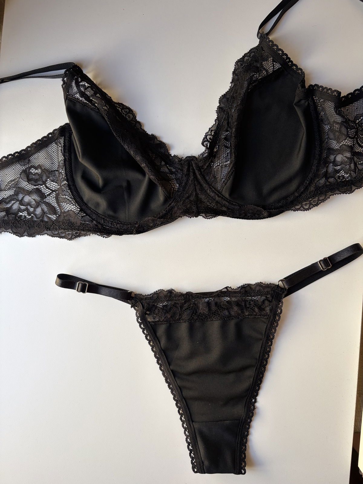 Conjunto de encaje y microfibra con less regulable en talles 40,42,44 y 46 de pantalon!
