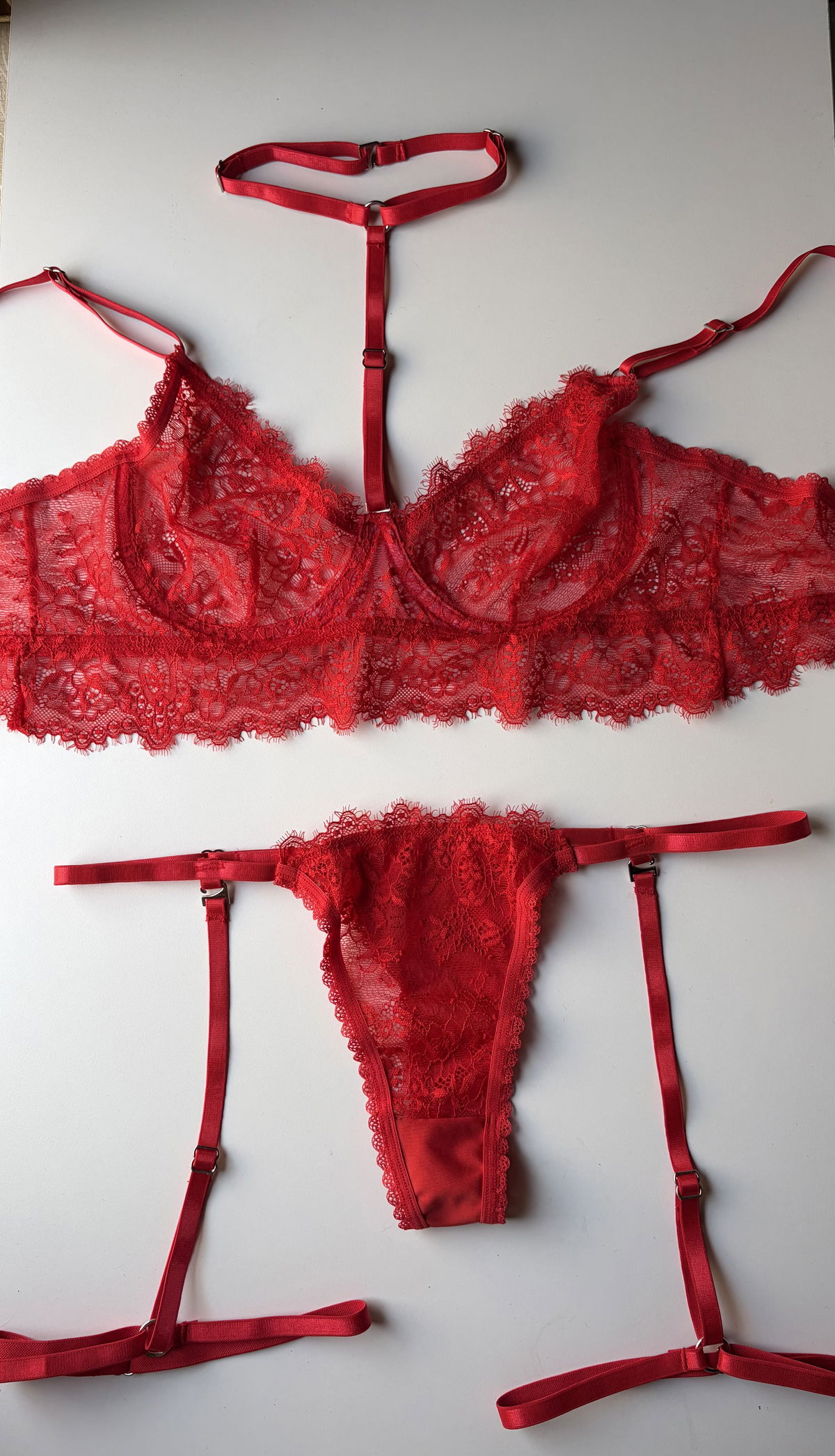 Conjunto de encaje con arneses desmontables en el pecho y en las piernas! Less en talles 38,40,42 y 44 de pantalon
