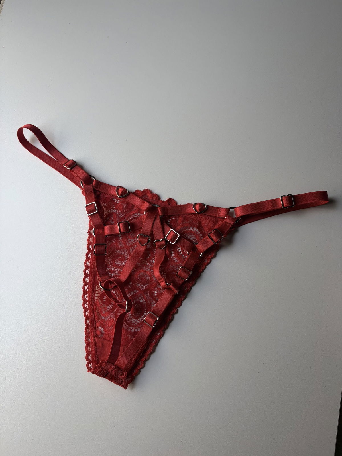 Less regulable de encaje con detalle en parte de atrás con elástico y avíos de corazones.