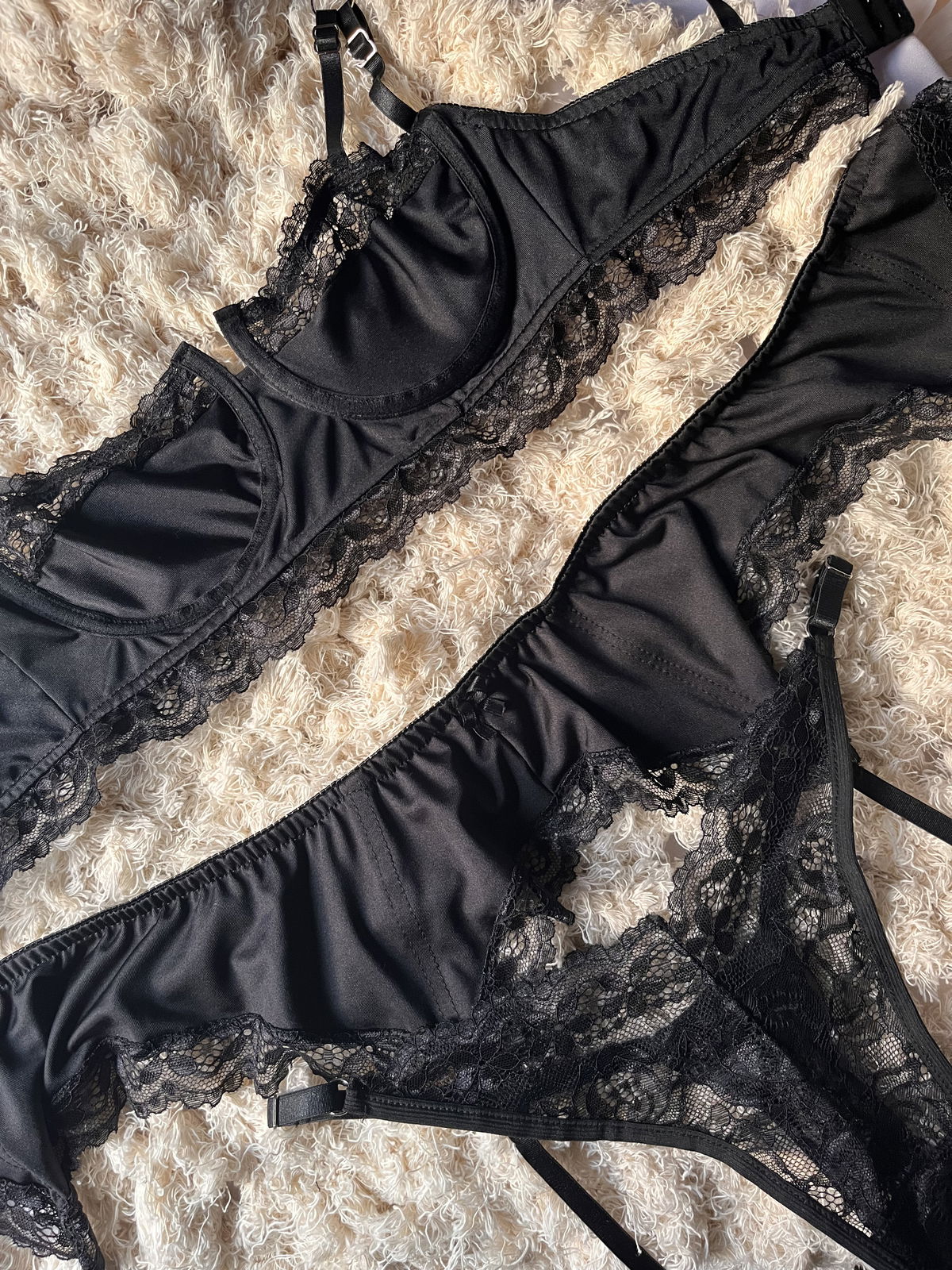 Conjunto de Micro fibra y encaje con portaligas y less en talles 38,40 y 42 de pantalón!