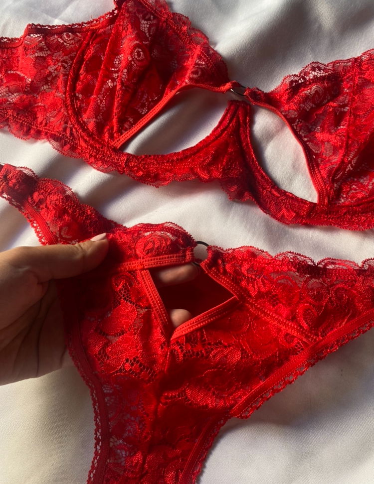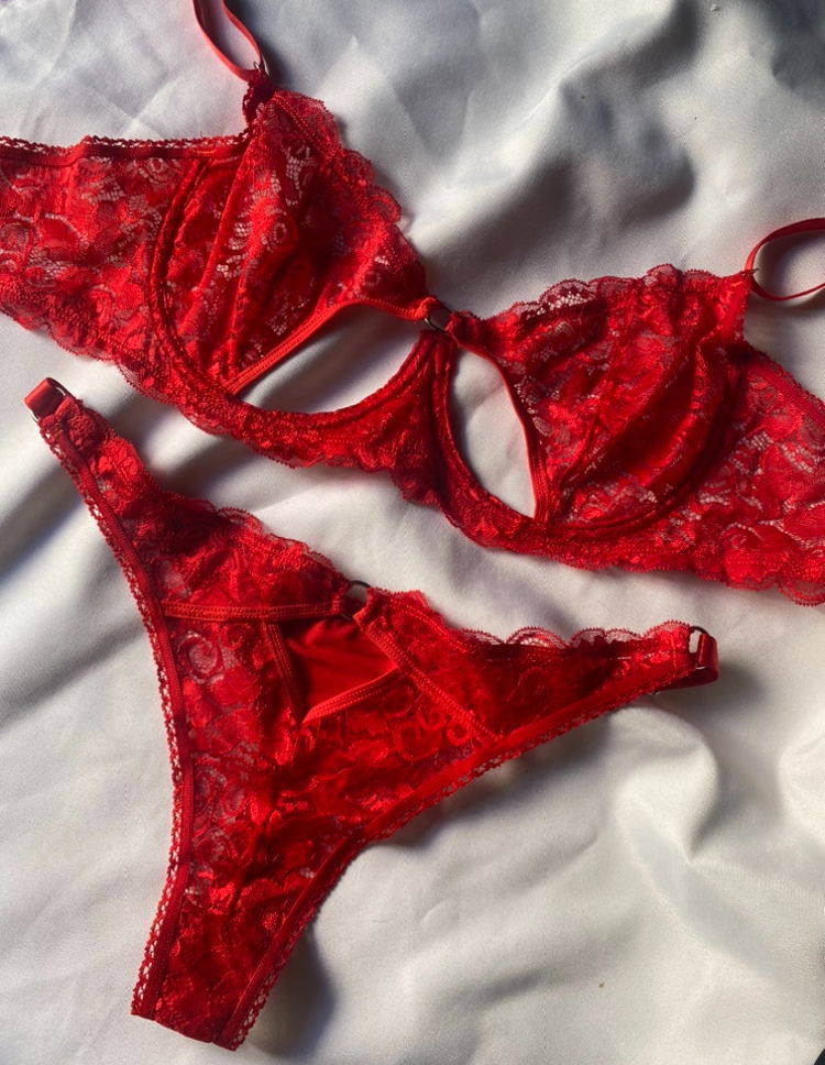 Conjunto de encaje con abertura en el pecho y less regulable en talles 40,42,44 y 46 de pantalón!